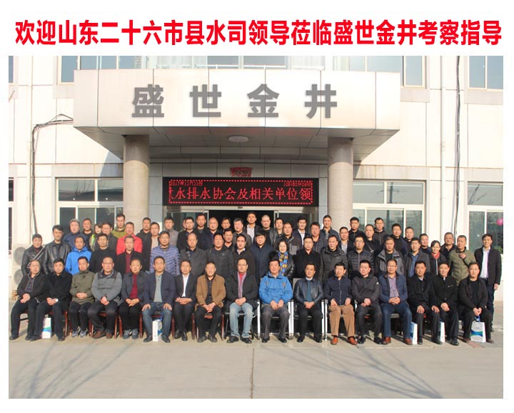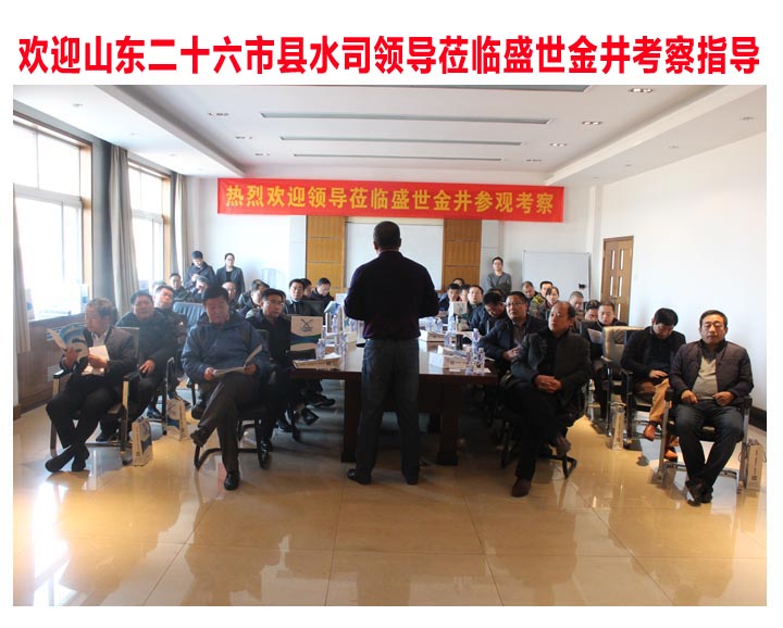 2017年12月23日,山東省二十六市縣水司大型領(lǐng)導(dǎo)考察團(tuán),蒞臨盛世金井參觀考察。盛世金井董事長(zhǎng)、營(yíng)銷中心總經(jīng)理、技術(shù)部經(jīng)理、市場(chǎng)部經(jīng)理、銷售助理及相關(guān)領(lǐng)導(dǎo)熱情接待。